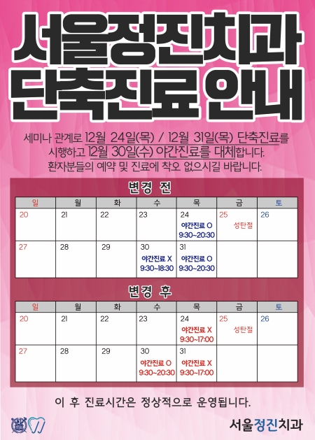 • 12월 단축진료 안내